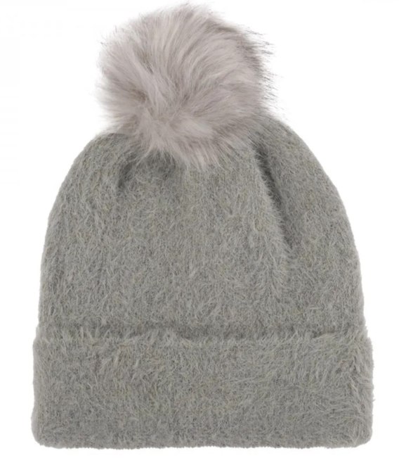 Ciepła puszysta czapka damska z pomponem jesienna zimowa (Szary)