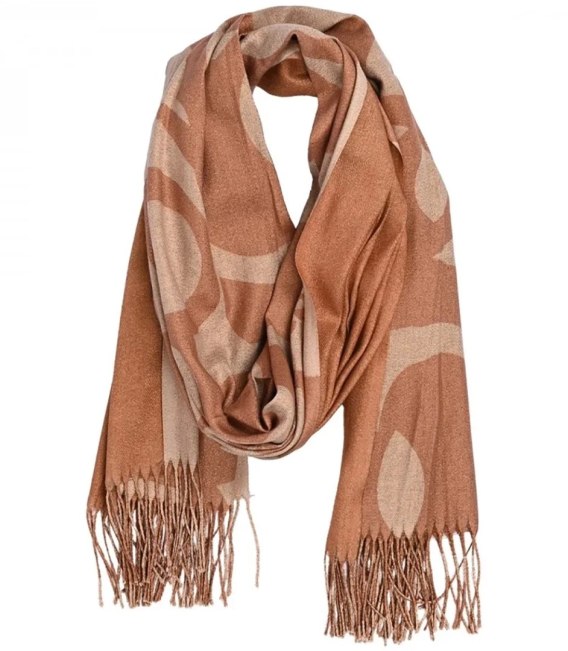 Ciepły stylowy szal szalik wzór kwiaty błyszcząca nitka miękki 180x70 cm (Wielokolorowy || Beżowy)