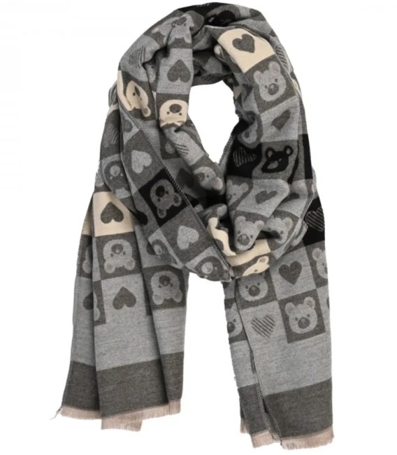 Ciepły stylowy szal szalik wzór w misie miękki gładki 180x65 cm (Szary || Wielokolorowy)