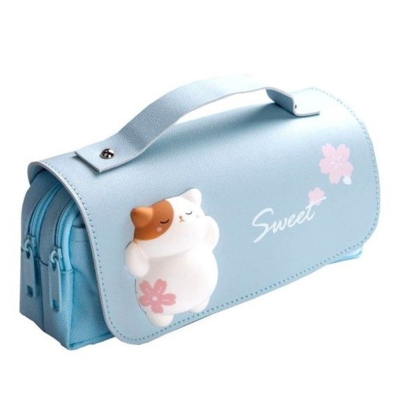 Duży PIÓRNIK wielofunkcyjny dwukomorowy z KOTKIEM niebieski PR14N