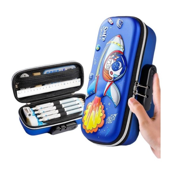 Pojemny, wielofunkcyjny dwukomorowy piórnik.